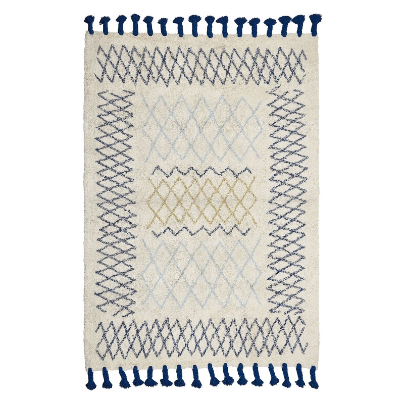 Alfombra de algodón 140 x 200 cm beige-azul ERZINCAN