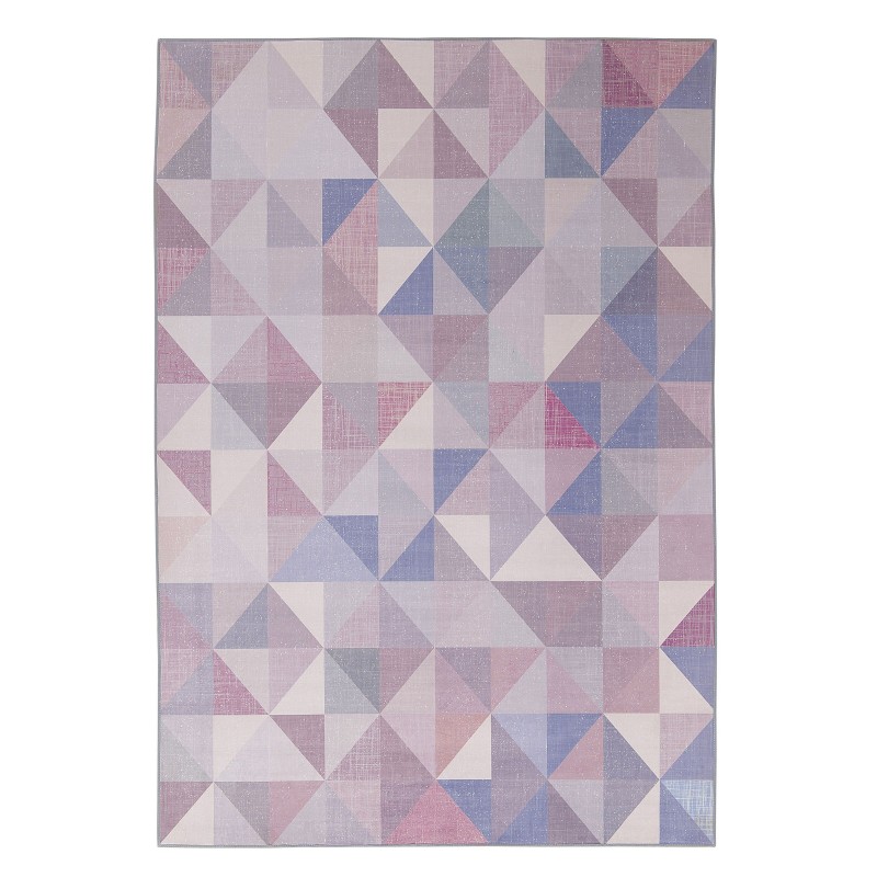 Esta alfombra será el complemento perfecto para interiores modernos. Su diseño geométrico consiste en muchos pequeños triángulos que crean un efecto impresionante. Los sutiles tonos de azul, gris y rosa añaden color al interior y complementan la habitación sin abrumarla. La base antideslizante hace que la alfombra sea ideal tanto para la sala de estar como para el dormitorio.