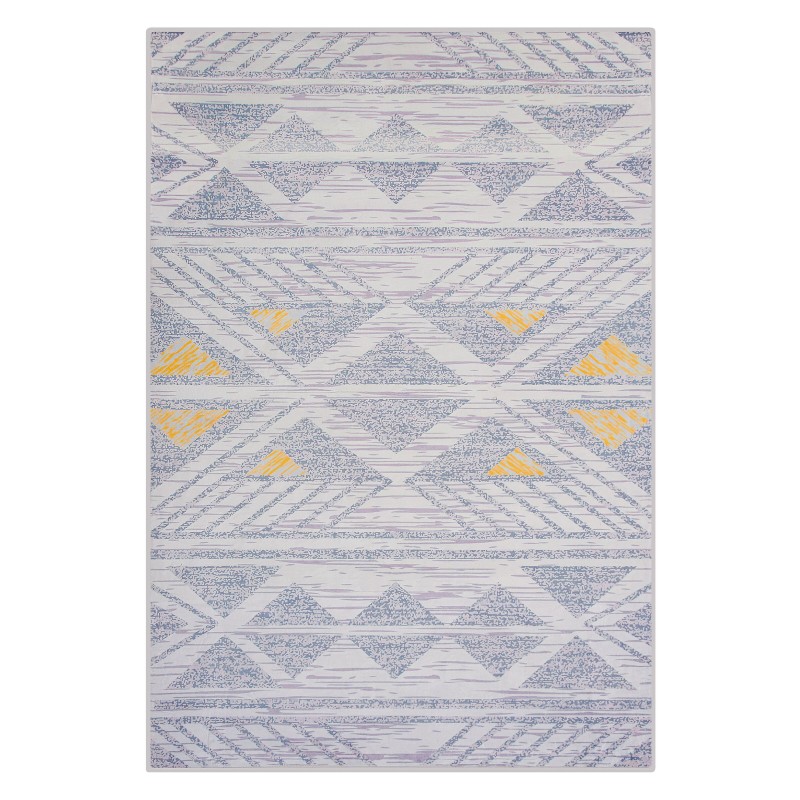 Añade un toque escandinavo a tu sala de estar o dormitorio con esta alfombra rectangular de diseño geométrico. El fondo en varios tonos de gris se combina perfectamente con habitaciones de cualquier color, y los triángulos amarillos iluminan cualquier espacio. La alfombra está hecha de poliéster duradero y suave al tacto, lo que facilita su limpieza.