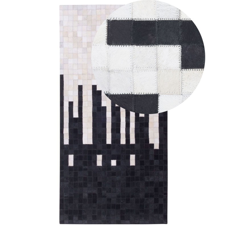 Alfombra de cuero 80 x 150 cm blanco y negro BOLU