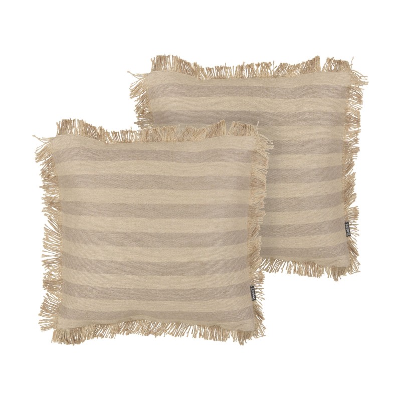 Juego de 2 cojines decorativos CIRSIUM Yute 45 x 45 cm Beige a rayas