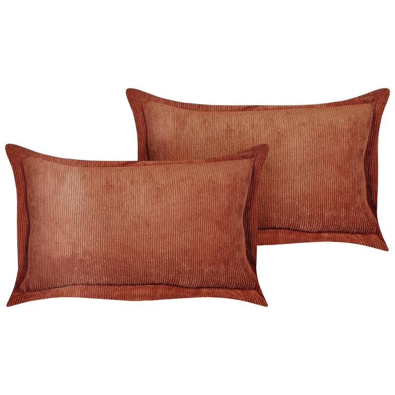 Juego de 2 cojines decorativos ZINNIA de pana 47 x 27 cm Marrón dorado Liso