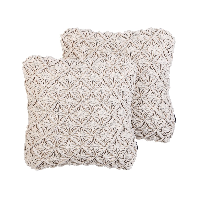 Juego de 2 cojines decorativos KIZKALESI Algodón 45 x 45 cm Beige claro Patrón geométrico