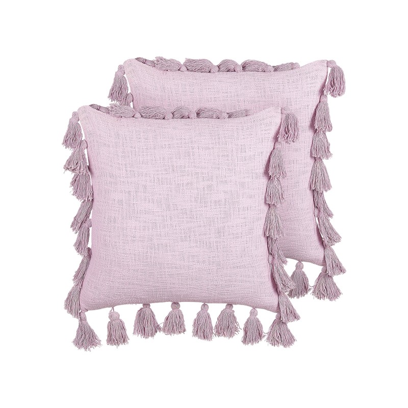 2 cojines decorativos de algodón con flecos 45 x 45 cm rosa LYNCHIS