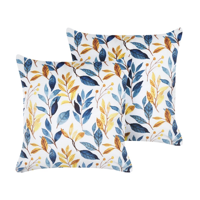 Estos cojines se verán geniales en habitaciones de estilo boho, gracias al diseño de hojas, que es visible en ambos lados de los cojines, en colores amarillos y azules. Las fundas están hechas de terciopelo, lo que las hace agradables al tacto y duraderas. Todo es también muy fácil de limpiar gracias a la cremallera ubicada en el lateral de los cojines.