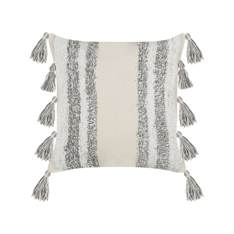 Este cojín decorativo con rayas y flecos aportará un toque de estilo boho y vintage a tu hogar. Gracias a su diseño, el cojín es un complemento elegante pero práctico para cualquier habitación. Hecho de algodón ecológico, el cojín está relleno de manera gruesa y proporcionará total comodidad al usarlo.