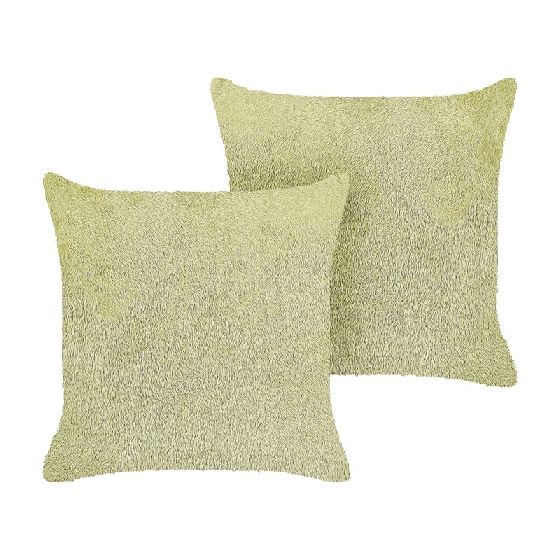 Renueva la decoración de tu hogar con estos cojines elegantes. Están hechos de poliéster, lo que los hace duraderos y agradables al tacto, principalmente debido a su superficie peluda. Su atractivo color verde permite que se adapten fácilmente a diferentes estilos de interiores.