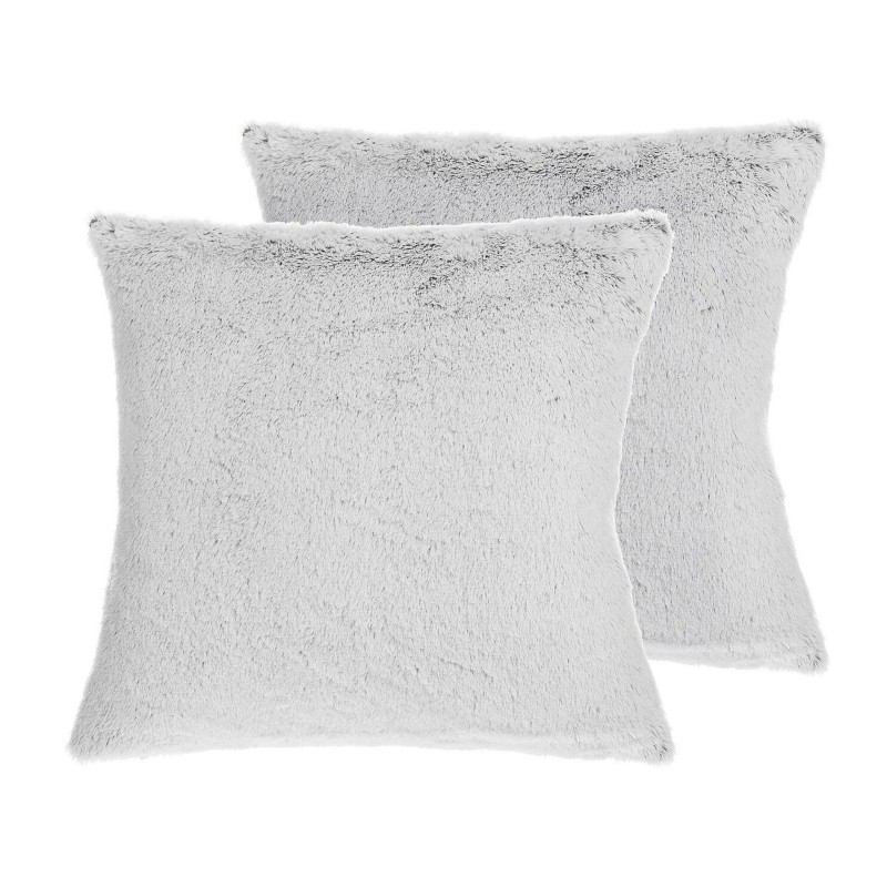 Conjunto de 2 cojines decorativos CLEMATIS Piel sintética 45 x 45 cm Gris claro Sólido