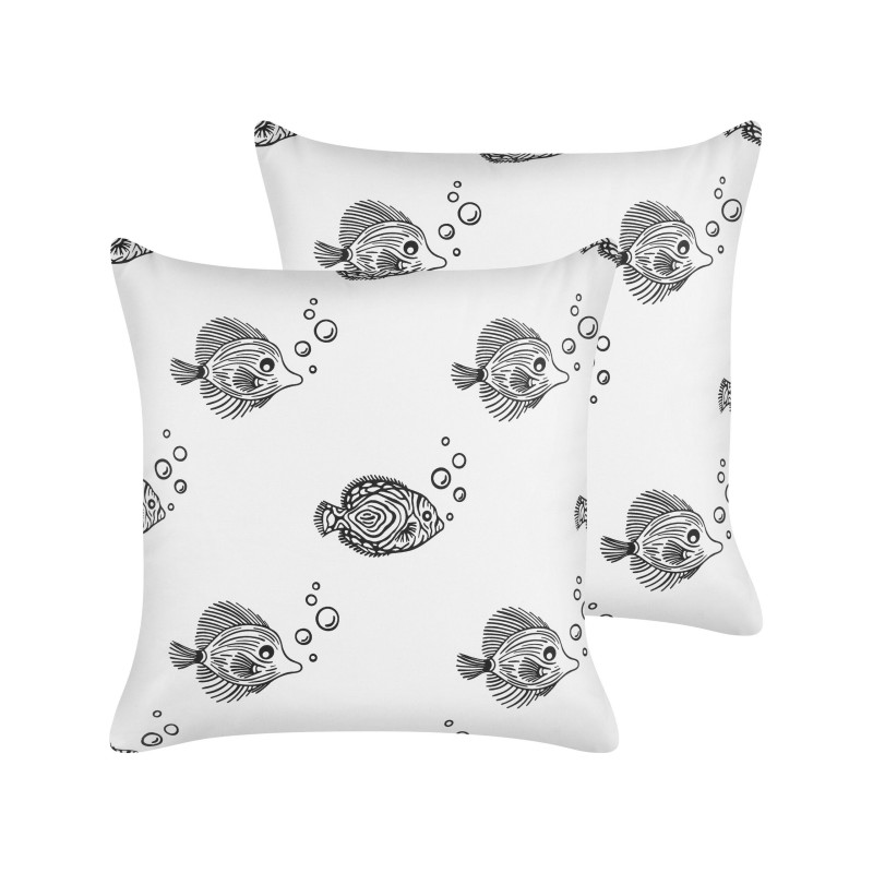 2 cojines decorativos de algodón para niños con diseño de peces 45 x 45 cm blancos TWEEDIA