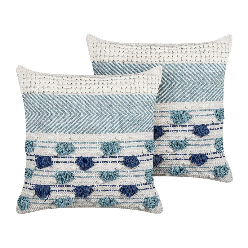 Juego de 2 cojines decorativos DATURA Algodón 45 x 45 cm Azul Patrón geométrico