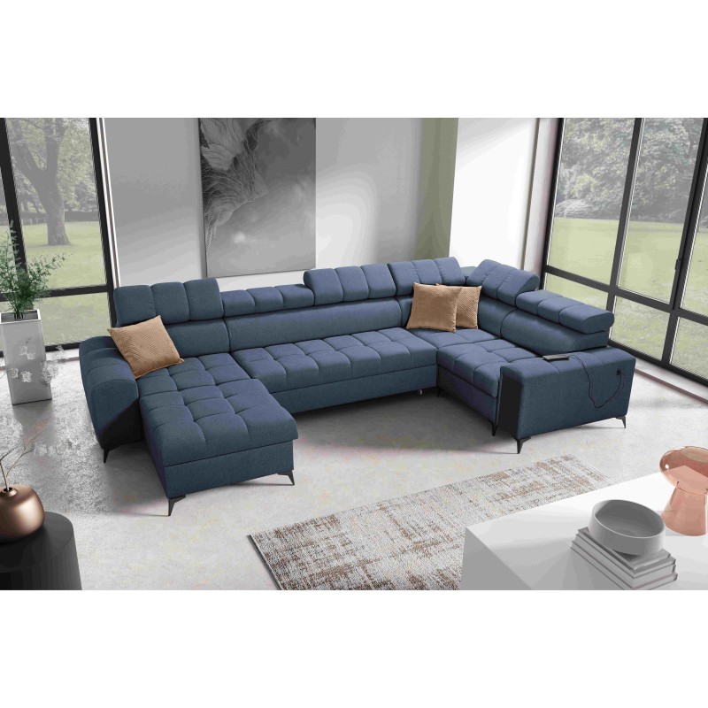 Sección en forma de U Venna IV Maxi con función de cama, puerto USB y bar abierto, tela Avra 14