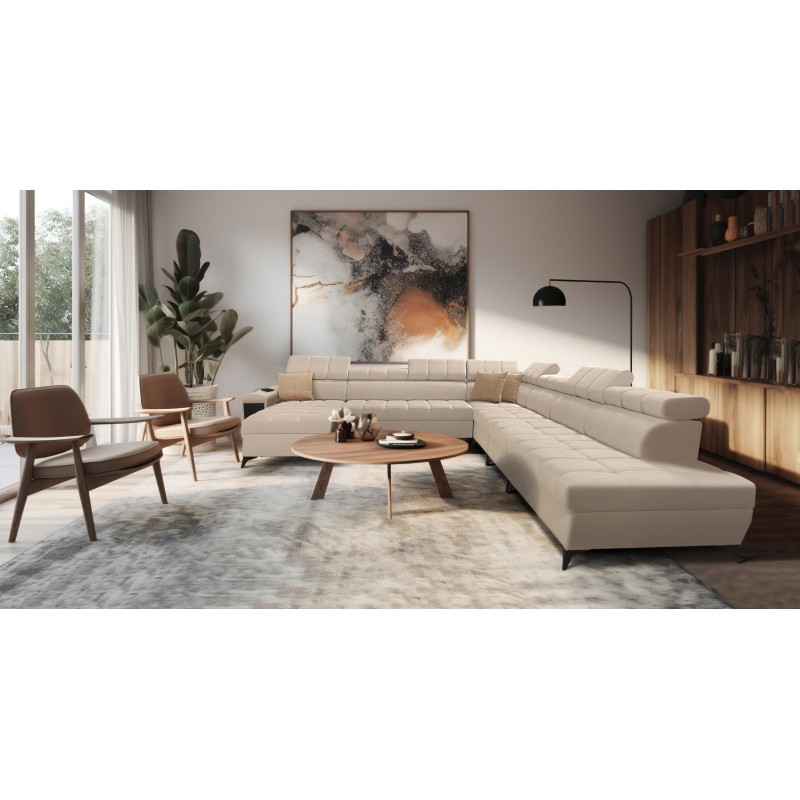Diseñado pensando en la máxima comodidad y apariencia elegante, el esquinero en forma de U Venna XIII es la solución ideal para cualquier interior. Fabricado con tela de alta calidad Plusz, Avra 2, ofrece durabilidad y facilidad de limpieza. Se puede configurar libremente, adaptándose perfectamente a cualquier arreglo del espacio.
