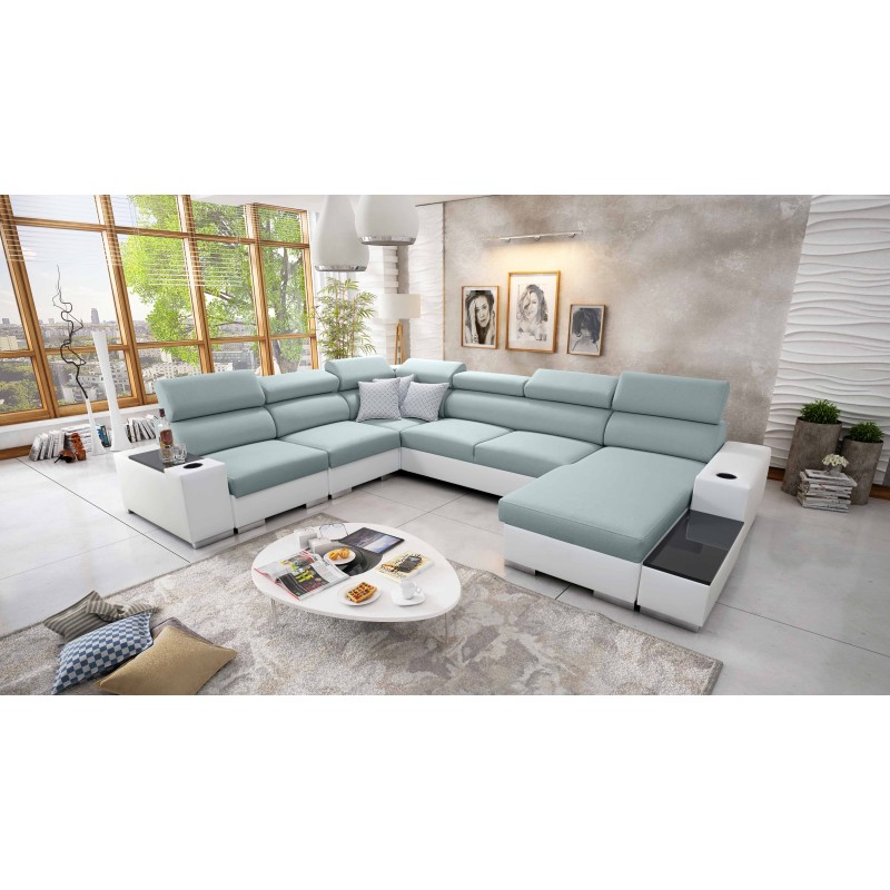 Esquinero en forma de U Napoli VIII con función de sueño y bar abierto Tapicería Sawana 72 + Ecocuero