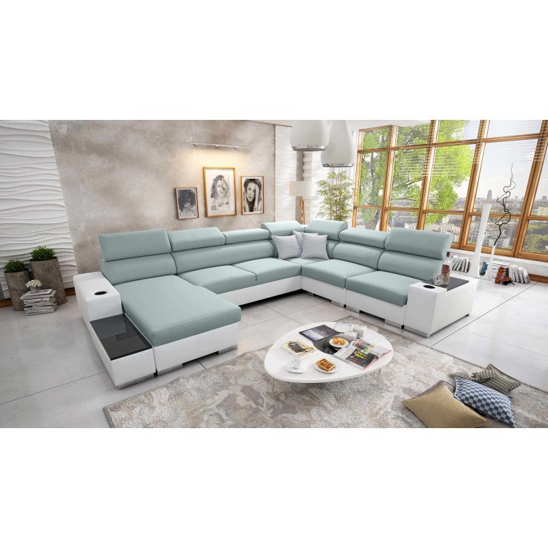 Esquinero en forma de U Napoli VIII con función de sueño y bar abierto Tapicería Sawana 72 + Ecocuero