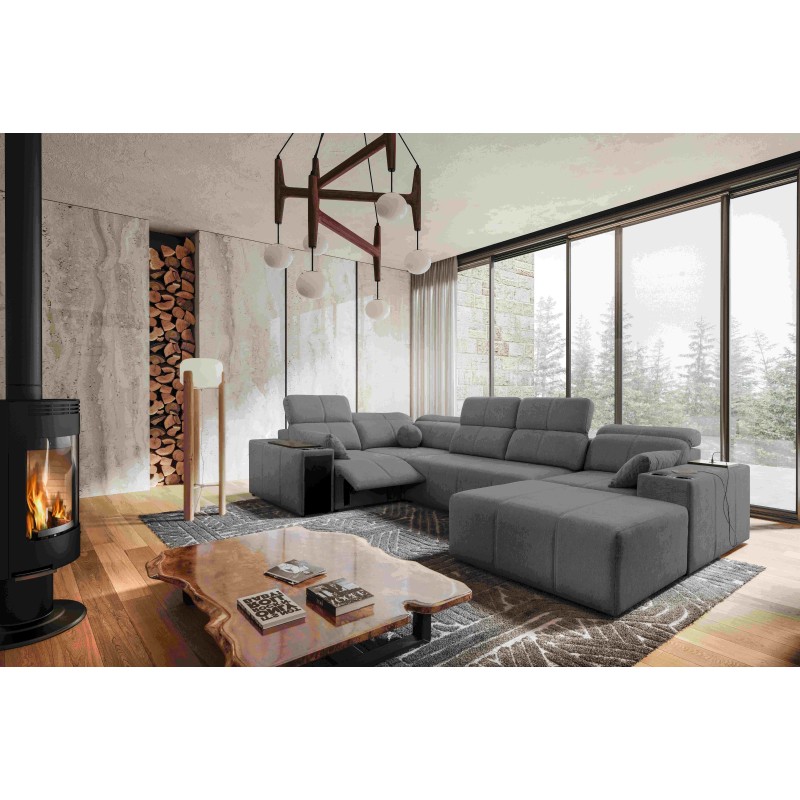 Sofá esquinero en forma de U Milano IV mix con función de cama y función de relax, tejido verita 88.