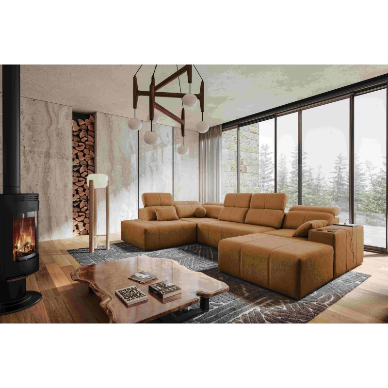 Sofá en forma de U milano VI con función de cama tapizado en tela verita 54