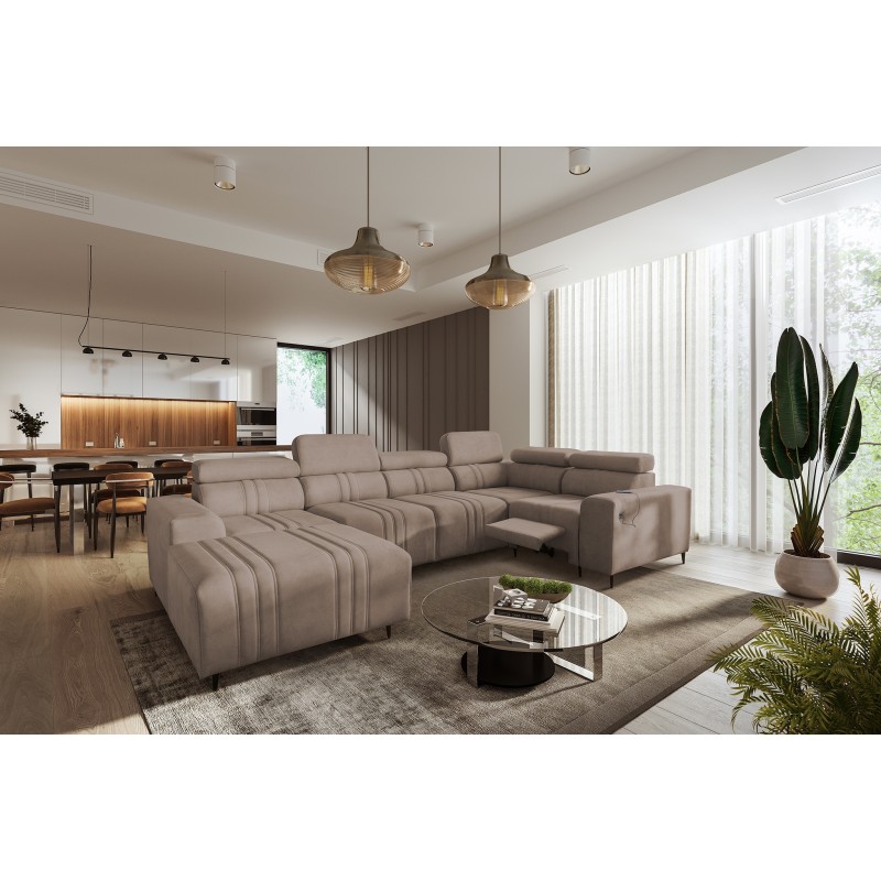 Sofá esquinero en forma de U Verona IV Mix con función de cama y función de relax manual, tapizado en tela Vena 14