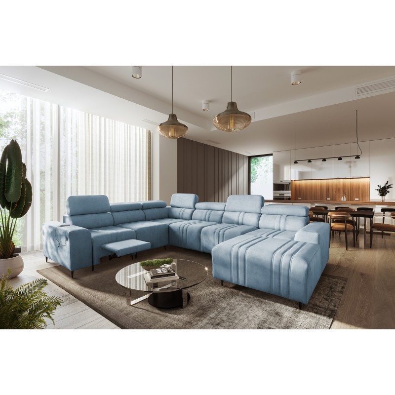 Sofá esquinero en forma de U Verona VIII Mix con función de cama y función de relajación manual en tela Vena 6.