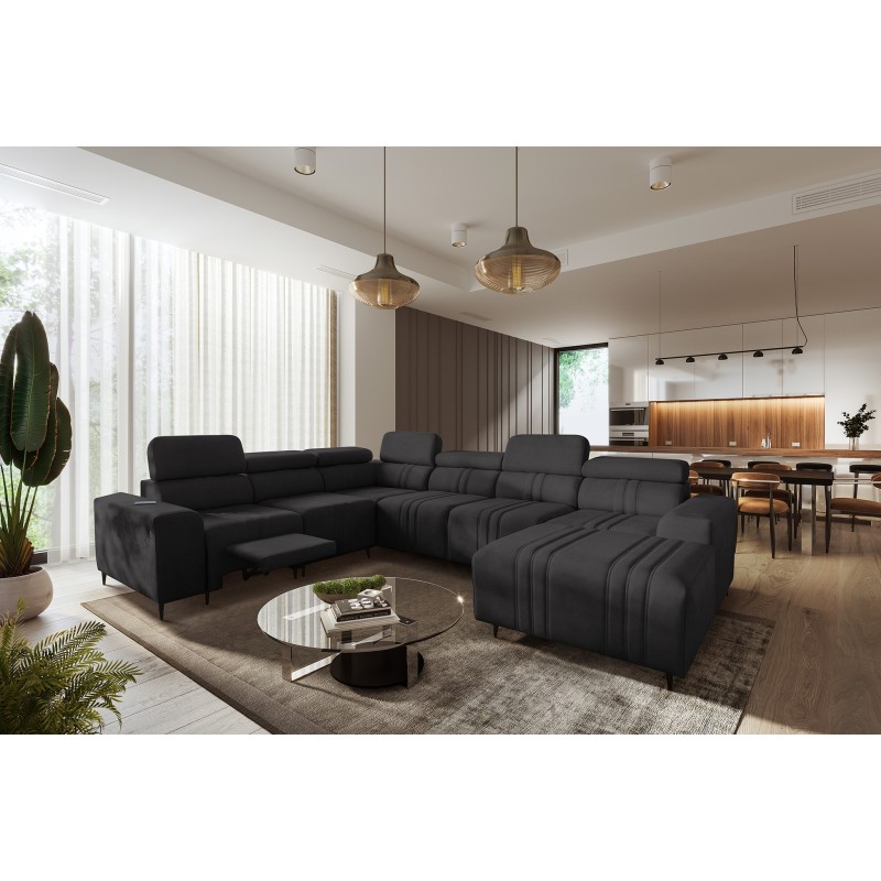 Sofá esquinero en forma de U Verona VIII Mix con función de cama y función de relax manual, tela Vena 20.