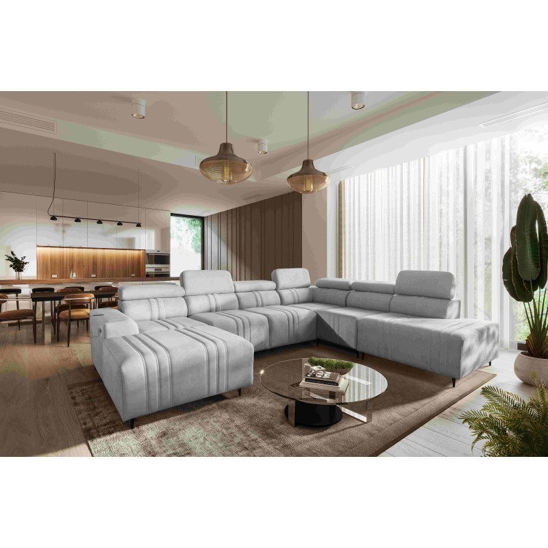 Sofá esquinero en forma de U Verona X con función de cama, tela Vena 3