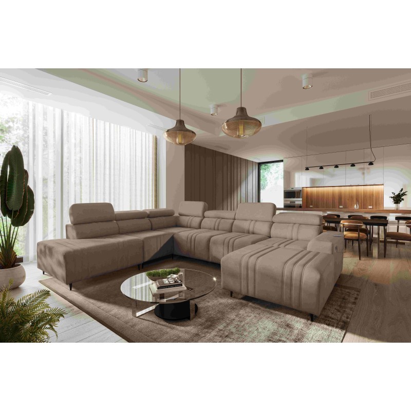 Sofá esquinero en forma de U Verona X con función de cama tela Vena 14