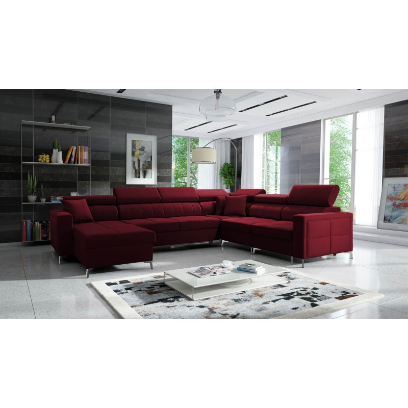 El sofá en forma de U Oslo VII, con función de cama y contenedor para ropa de cama, es una combinación de estilo, funcionalidad y confort. Fabricado con tela de alta calidad Velvet, Jaguar 2181, se presenta de manera extremadamente elegante y moderna. Su diseño universal hará que se adapte perfectamente a cualquier interior, añadiéndole encanto y calidez.