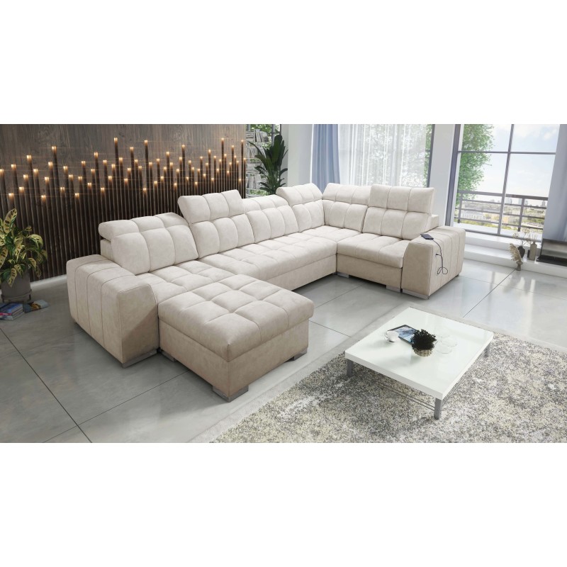 Sofá en forma de U Prisma IV con función de cama, puerto USB y contenedor para ropa de cama, tela Terra 13