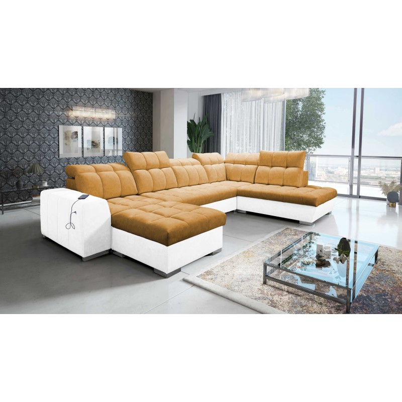 Los muebles que compras deben servir no solo como decoración, sino también como soluciones prácticas para tu hogar. Por eso, nuestro sofá esquinero Prisma VI está equipado con función de cama, puerto USB, reposacabezas ajustables y un contenedor para ropa de cama. Gracias a ellos, el Prisma VI se convertirá en un elemento indispensable de tu salón.