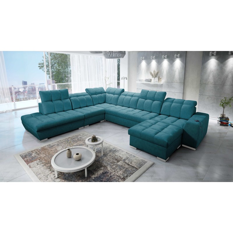El sofá esquinero Prisma X está equipado con soluciones prácticas que sin duda apreciarán tanto los amantes del relax hogareño como quienes suelen recibir a amigos. Ofrece una superficie de descanso excepcionalmente espaciosa y un puerto usb, convirtiéndose así en un lugar perfecto para descansar y en un práctico espacio de trabajo. Además, el mueble cuenta con un contenedor para ropa de cama, lo que facilita enormemente el almacenamiento.
