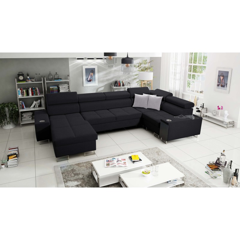 Sofá esquinero en forma de U Orbix IV Maxi con función para dormir, reposacabezas ajustables, puerto USB y cajón para ropa de ca
