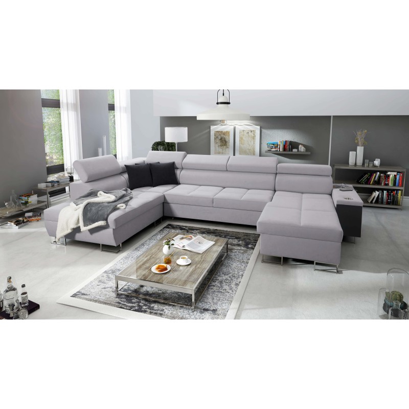 Te invitamos a conocer el excepcional sofá esquinero en forma de U Orbix VI. Es un mueble que combina soluciones modernas con elegancia clásica. Fabricado con la más alta calidad de tela Plecionka, Sawana 84, se presenta de manera excelente en todos los interiores. Su diseño universal hace que se adapte perfectamente tanto en la sala de estar como en espacios de oficina.
