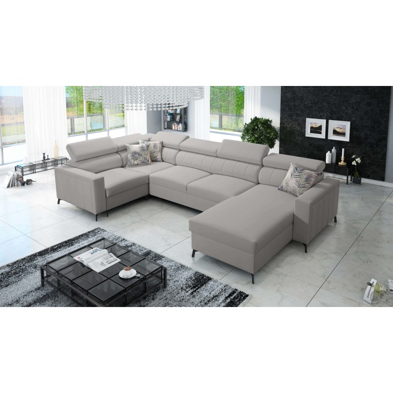 Sofá esquinero en forma de U Arco V Mini con función de dormir, reposacabezas ajustables, tejido Mono 231: un mueble excepcional que te sorprenderá con su estilo y funcionalidad.