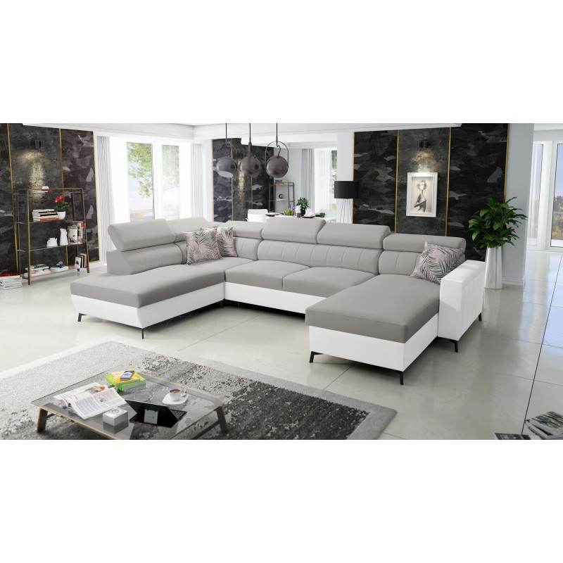 Sofá esquinero en forma de U Arco VI con función para dormir, reposacabezas ajustables, tela Mono 244 + Ecocuero.
