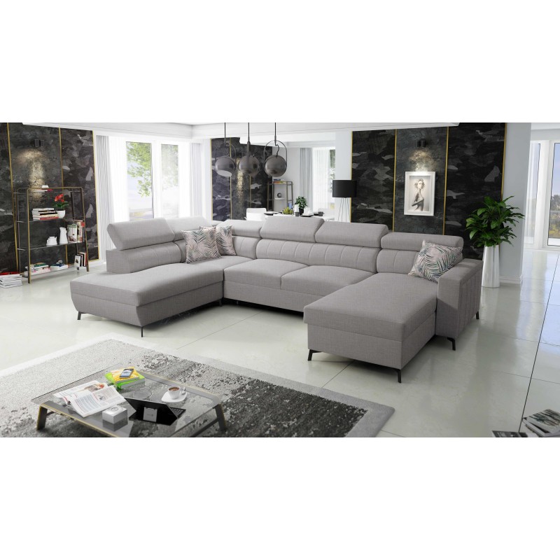 Sofá esquinero en forma de U Arco VI con función para dormir, reposacabezas ajustables, tela Sawana 11