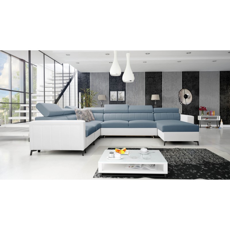 Sofá en forma de U Arco VII con función de dormir, reposacabezas ajustables, tela Mono 239 + Eco-cuero
