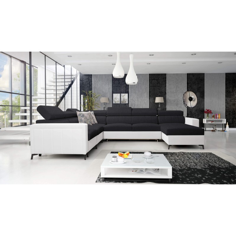 Sofá en forma de U Arco VII con función de dormir, reposacabezas ajustables tela Sawana 14 + Eco-cuero