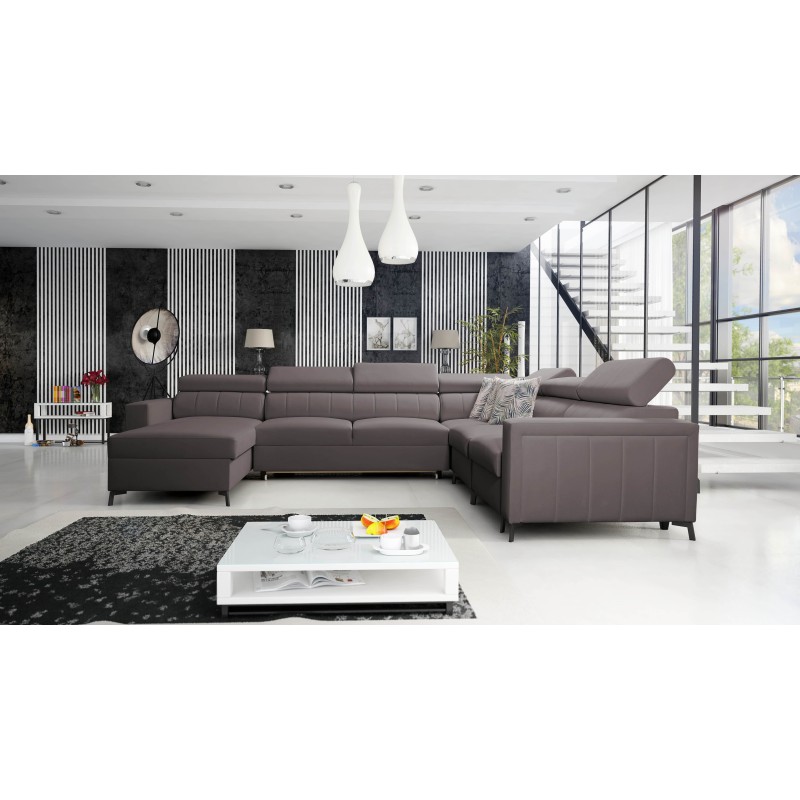 Sofá esquinero en forma de U Arco VII con función de dormir, reposacabezas ajustables, tela Mono 234