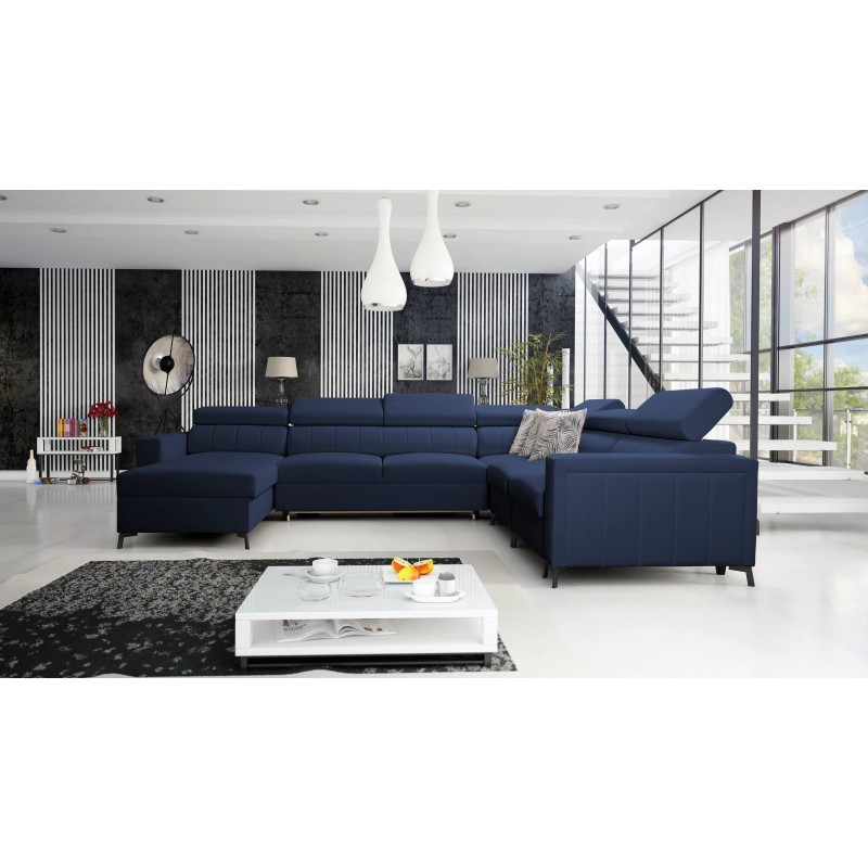 El sofá esquinero Arco VII combina un diseño moderno con el máximo confort de uso. Gracias a los reposacabezas ajustables y la parte trasera tapizada, ofrece completa relajación y comodidad en cada descanso. Además, se puede transformar fácilmente en una verdadera cama cómoda con una superficie de descanso de 288x127cm, ideal para invitados o para uso diario.