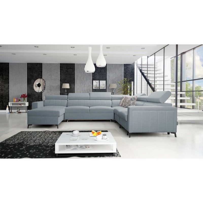 Sofá esquinero en forma de U Arco VII con función de cama, reposacabezas ajustables tela Sawana 72
