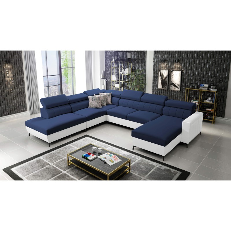 Sofá esquinero en forma de U Arco IX con función de cama, reposacabezas ajustables, tela Mono 241 + Eco-cuero.