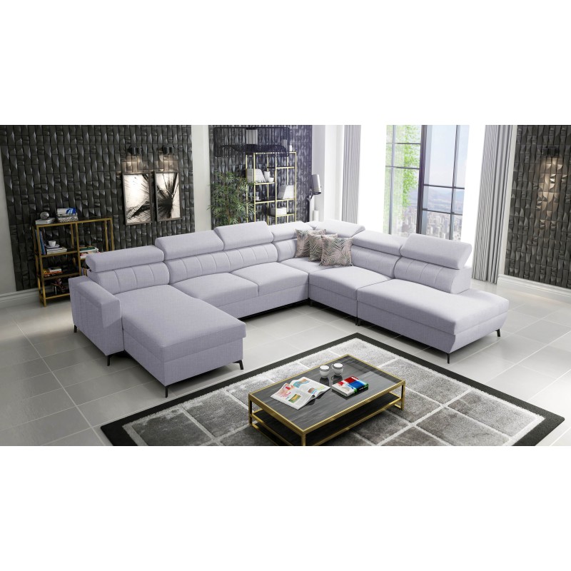 Sofá esquinero en forma de U Arco IX con función de cama, reposacabezas ajustables, tela Sawana 84