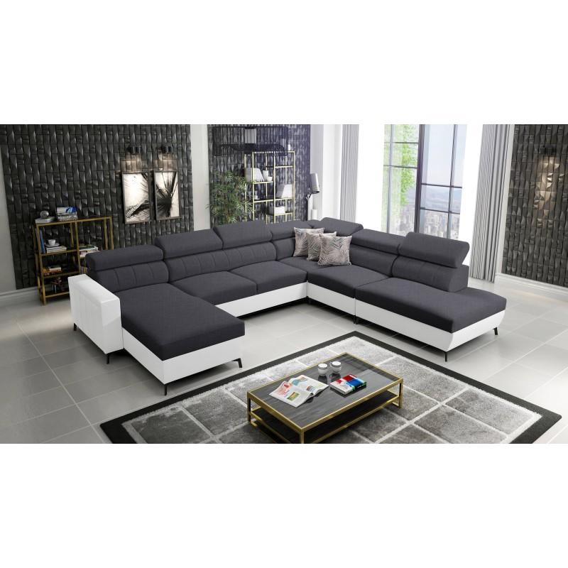 Sofá en forma de U Arco IX con función de dormir, reposacabezas ajustables, tela Sawana 96 + Ecocuero