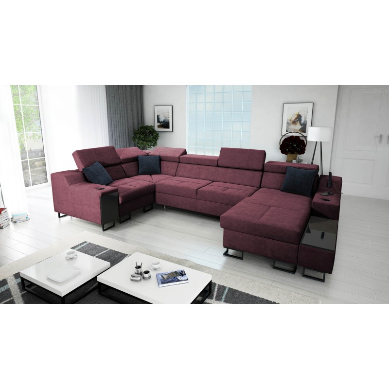 Sofá esquinero en forma de U Avanti IV Mini con función de cama y lámpara con puerto USB, tela Sawana 14.