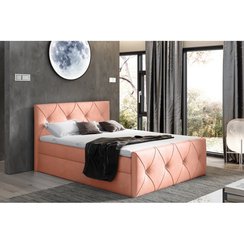 The presented Virox Lux Continental Bed is a true gem among bedroom furniture. Created from the highest quality Matt Velvet 08 fabric, its delicate texture adds elegance and nobility. The majestic, quilted headboard and front of the bed with stitching and fabric-covered buttons not only add charm but also provide excellent support while reading or resting.