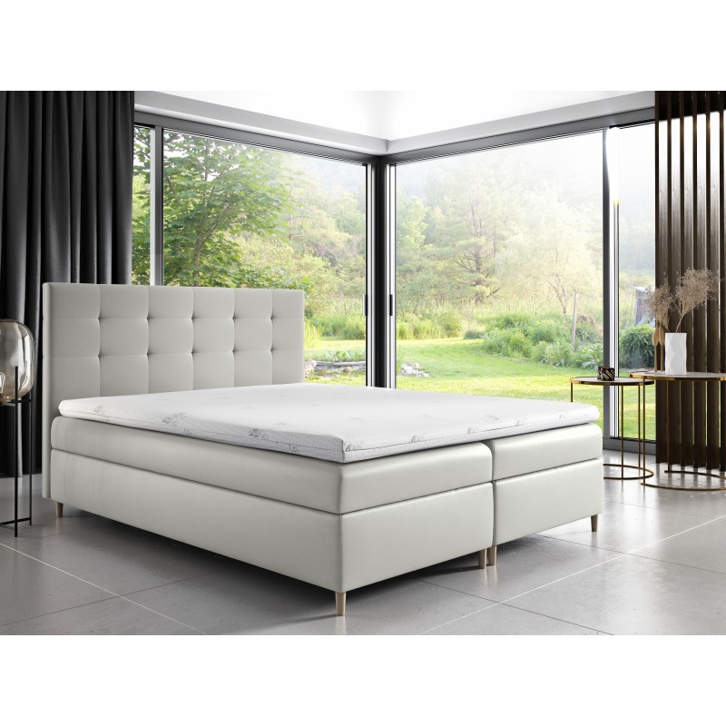 The Tivaro bed is equipped with 2 storage compartments for bedding, which help maintain order and aesthetics in the bedroom. An additional advantage is the wooden legs, which add warmth and a natural character to any room. All of this is covered with an exceptionally pleasant-to-touch fabric.