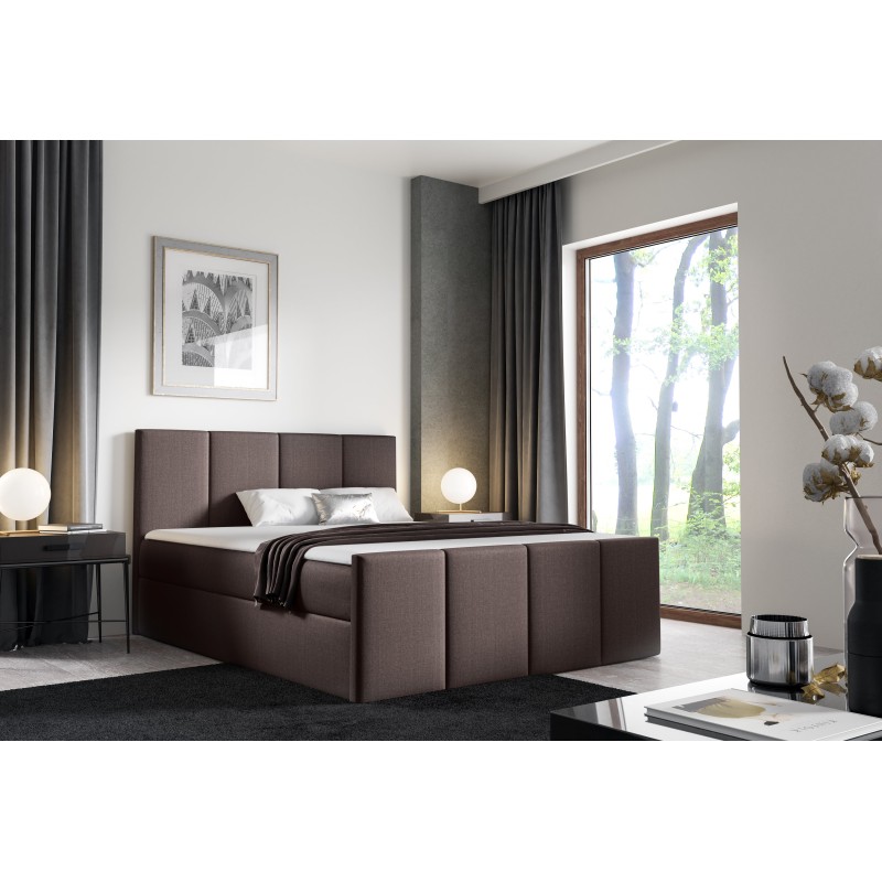 The Ulvaro bed includes two bedding storage compartments, offering a convenient and practical storage solution. Its mattress is made from a Bonnell spring, ensuring excellent support for the body. Additionally, the top mattress (TOPPER) is made of T-25 foam with a height of 4 cm, providing optimal conditions for a healthy, restorative sleep. An added advantage is the spring-loaded mechanism, which makes opening the bedding storage compartment easy.