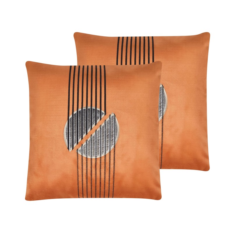 Set of 2 CEROPEGIA decorative cushions Velvet 45 x 45 cm Orange Geometric pattern