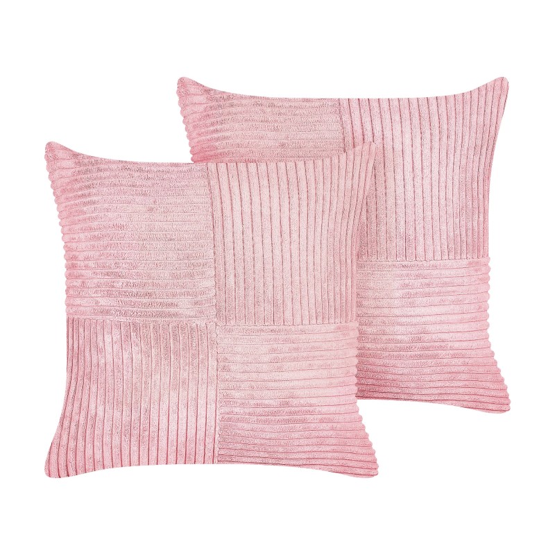 Set of 2 MILLET decorative cushions Corduroy 43 x 43 cm Pink Geometric pattern