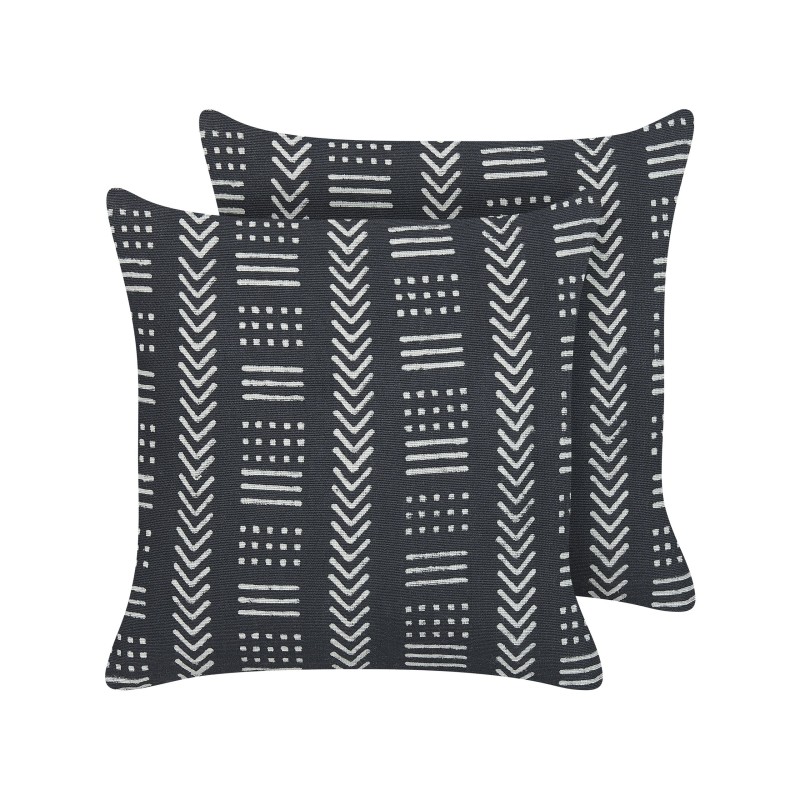 Set of 2 BENZOIN decorative pillows Cotton 45 x 45 cm Black Geometric pattern
