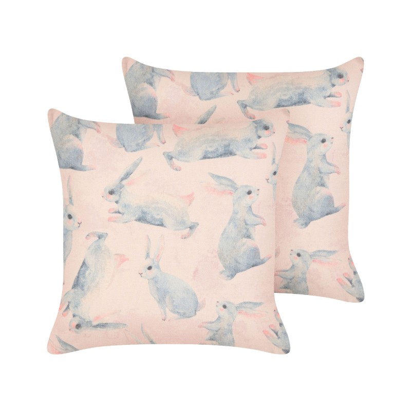 Add a touch of charm to your space with these cushions. Featuring a delightful rabbit pattern, these products are made from a blend of cotton and polyester, ensuring durability and softness. The pattern perfectly introduces a sense of coziness to the room. With removable, easy-to-maintain covers, this set is a perfect addition that will create a comfortable and enchanting atmosphere in any interior.